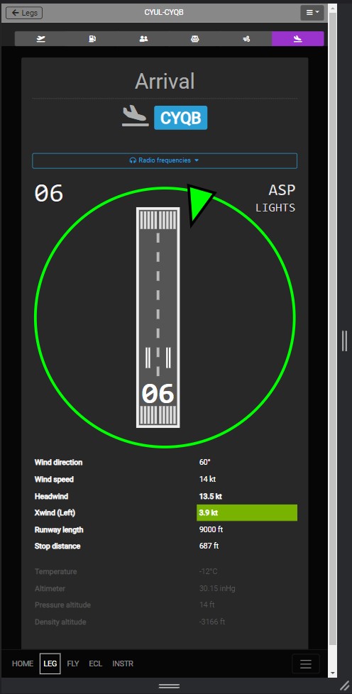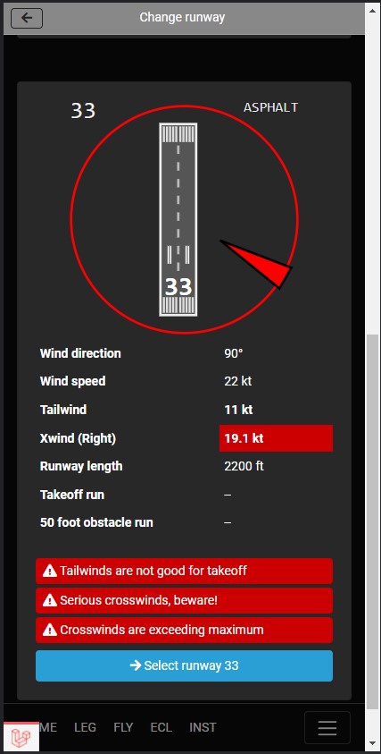 - Runways information (length, height ASL, crosswind, tail winds)