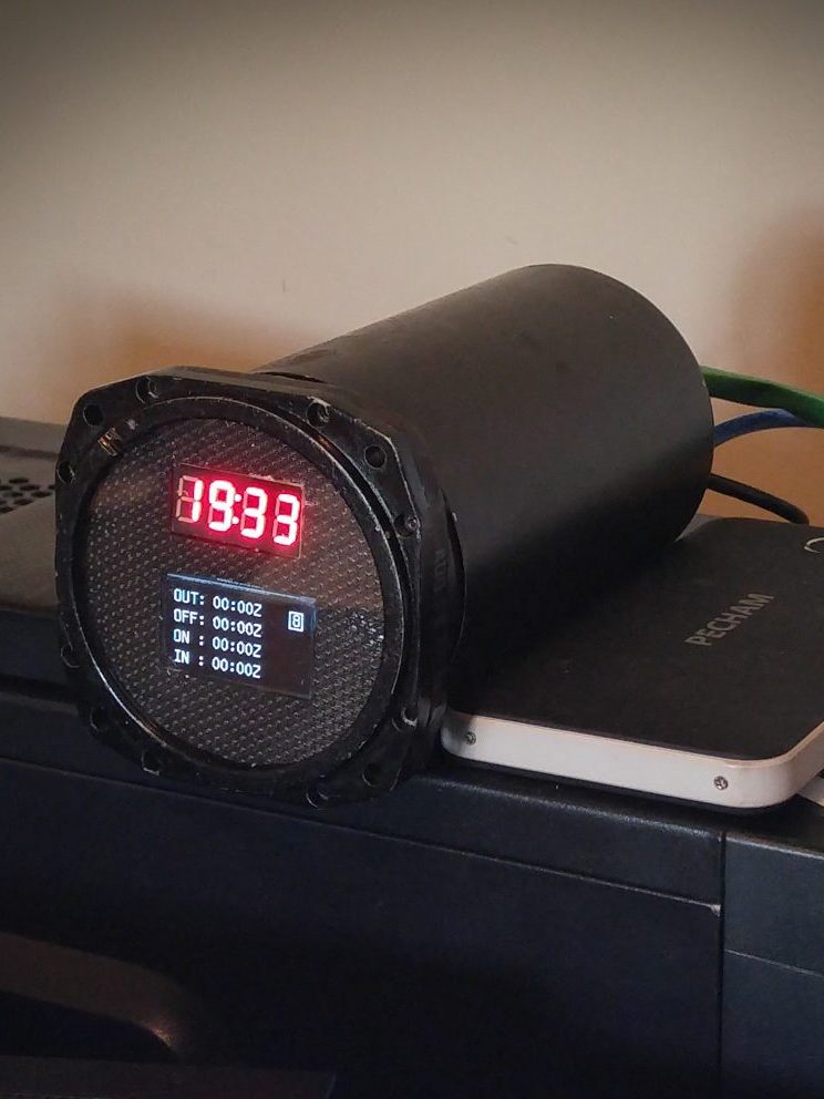 I started flying long before their introduction when pilots had to manually write down information provided over VHF or HF so it was fantastic to finally be able to get ATIS, dep clrc, WX and automatic flight times recording when ACARS & FMS were finally introduced in the early 1990s at our airline. The ACRS system gave me an idea to design a device that would automatically record OUT-OFF-ON-IN times and my first attempt was approximately 5 years ago when I had the ‘bright idea’ of using an old ADF unit and fill it with an Arduino Yún board, a GPS module and a few tiny displays.